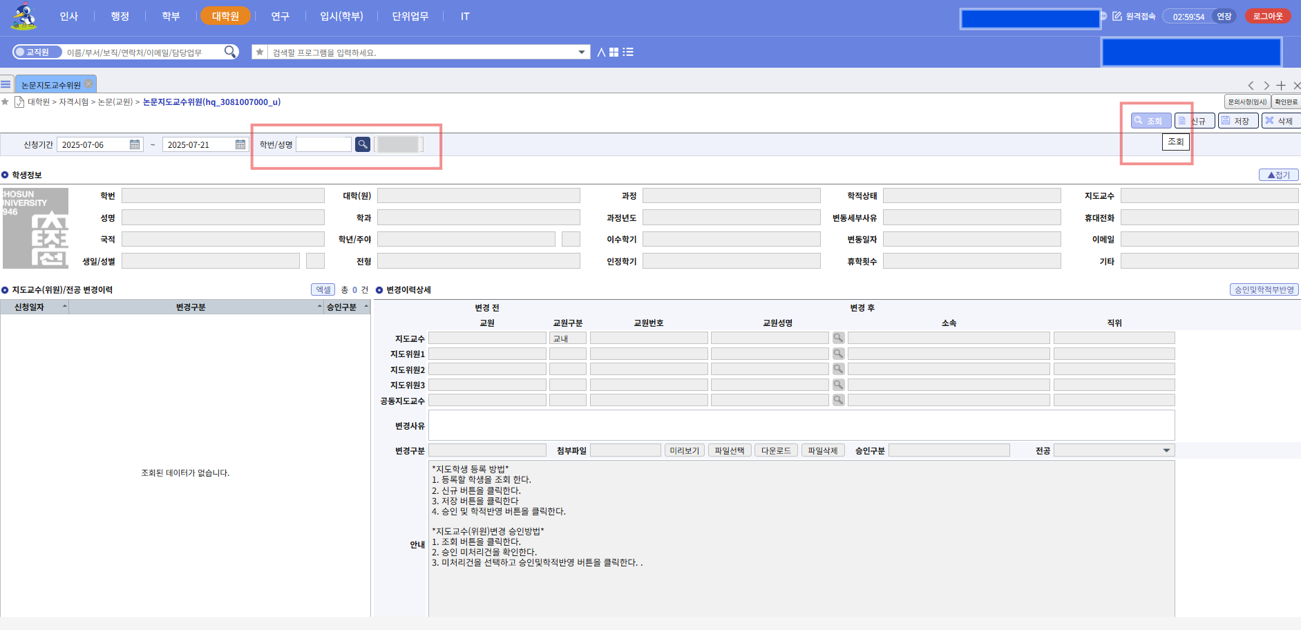 3. 논문지도교수 입력방법
