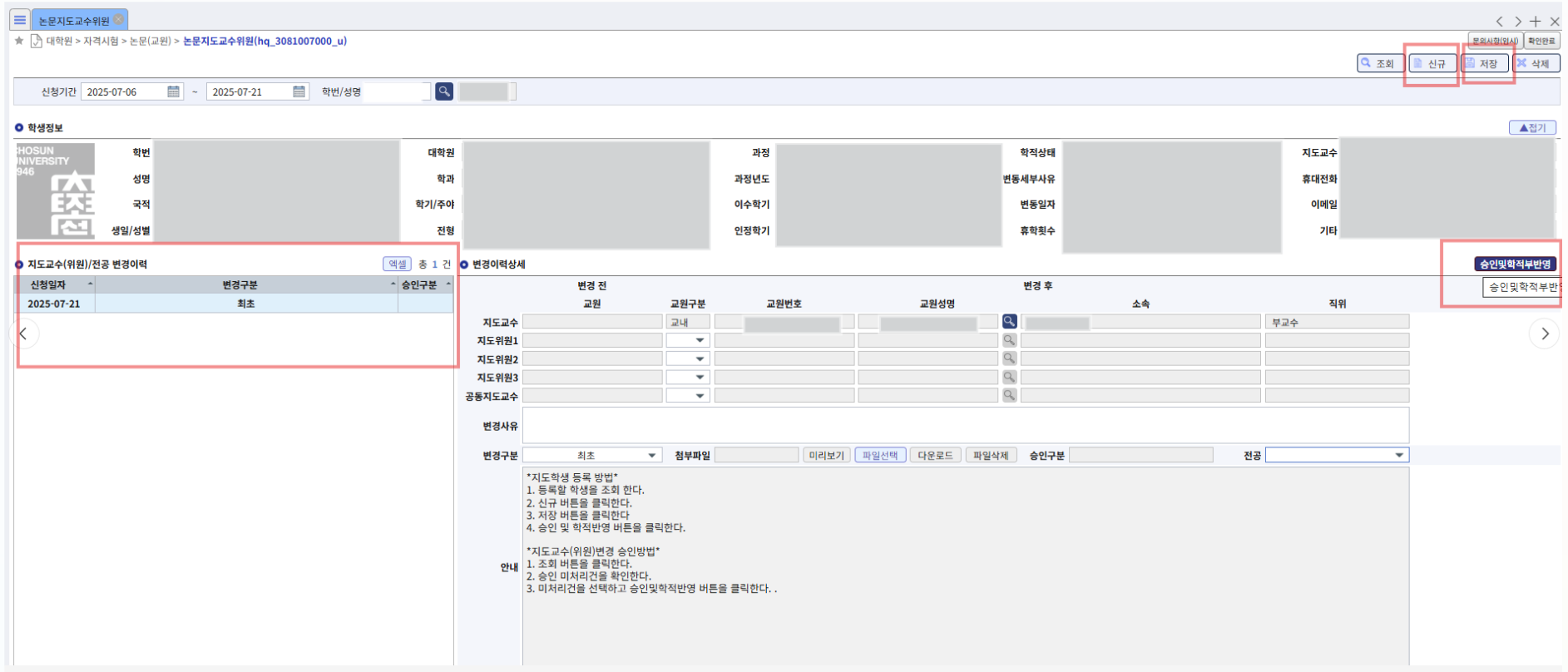 지도교수님으로 부터 승인받는 절차를 거치게 됩니다.(대학원 종이제출X)